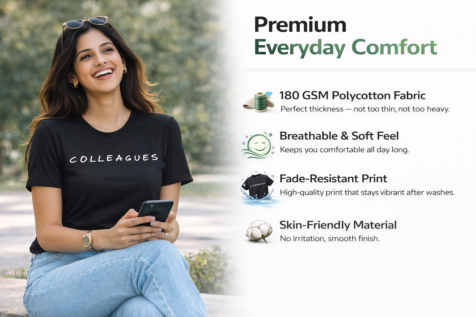 Fabric: Poly-cotton blend, 180 GSM – lightweight, breathable, and silicon-washed for an ultra-soft, smooth finish.